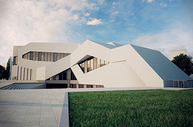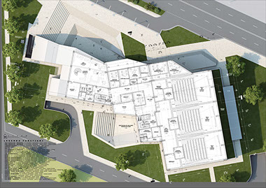 The project is located in Focsani, Romania. It consists of a multipurpose building with amenities ranging from libraries, restaurants, cinemas, and conference rooms.