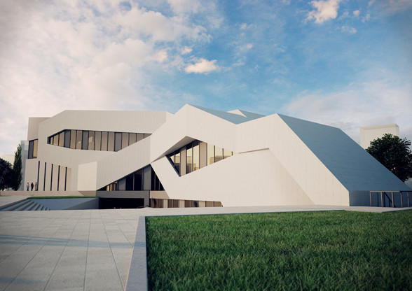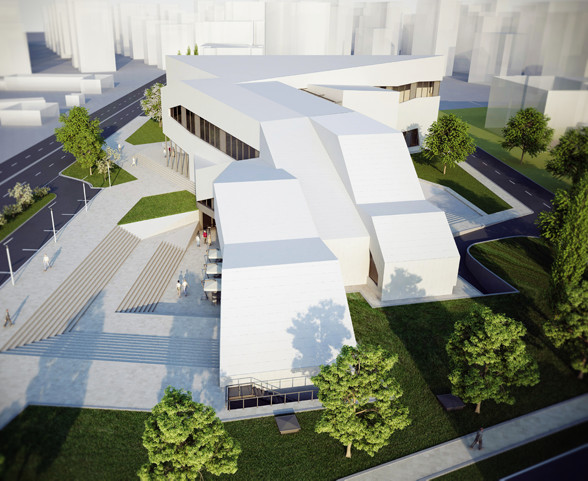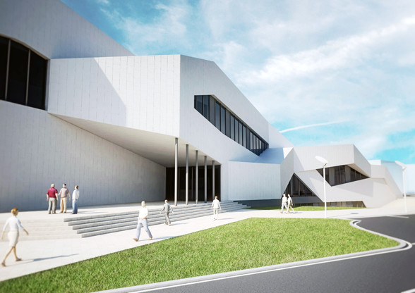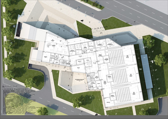 The project is located in Focsani, Romania. It consists of a multipurpose building with amenities ranging from libraries, restaurants, cinemas, and conference rooms.