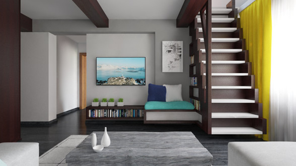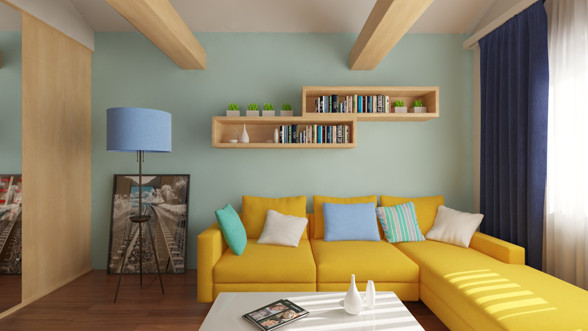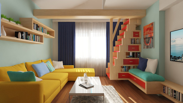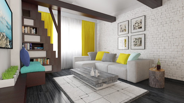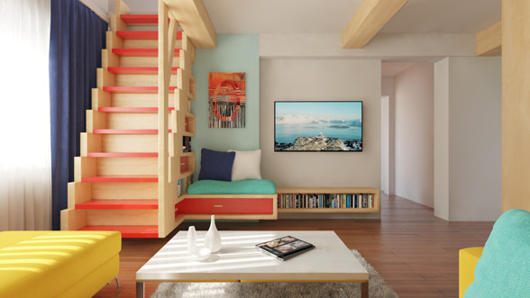 The project is located in Bucharest, at Constantin Brancoveanu . We've created the interior design for two mirrored layout apartments. The challenge was to create 2 similar designs but at the same time different according to each owner's personality. The apartments are relatively small so we had to be creative and make them seem larger. The solution was to remove the ceiling above the living room and create an access to the attic which became a leisure room.